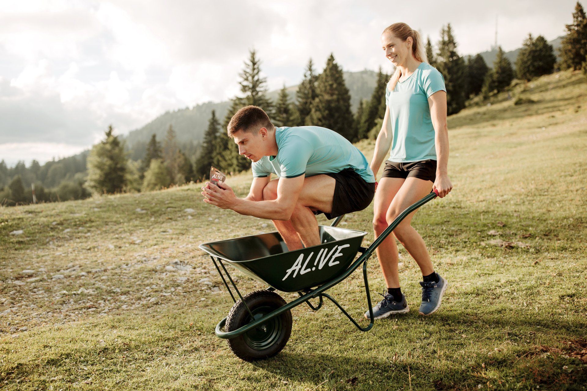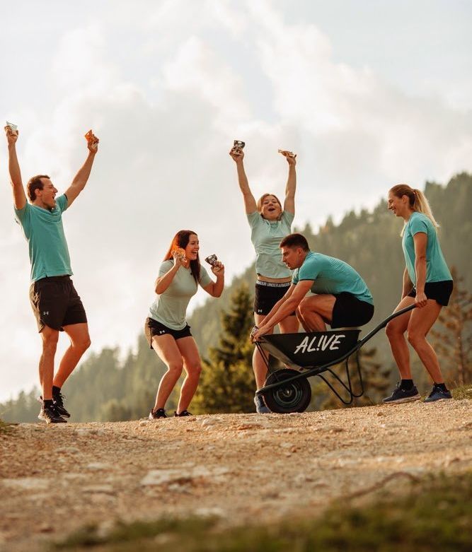 Ta dinamični duh pa je tudi služil kot navdih TV in spletnega oglasa. Slovenske alpske smučarje Žana Kranjca, Štefana Hadalina, Meto Hrovat, Andrejo Slokar in Ano Bucik smo postavili v svoje naravno okolje - sredi Kranjske gore, med poletnimi pripravami. In pustili, da skozi svoje običajne priprave pokažejo ključne prednosti AL!VE Drops čokoladnih kapljic.